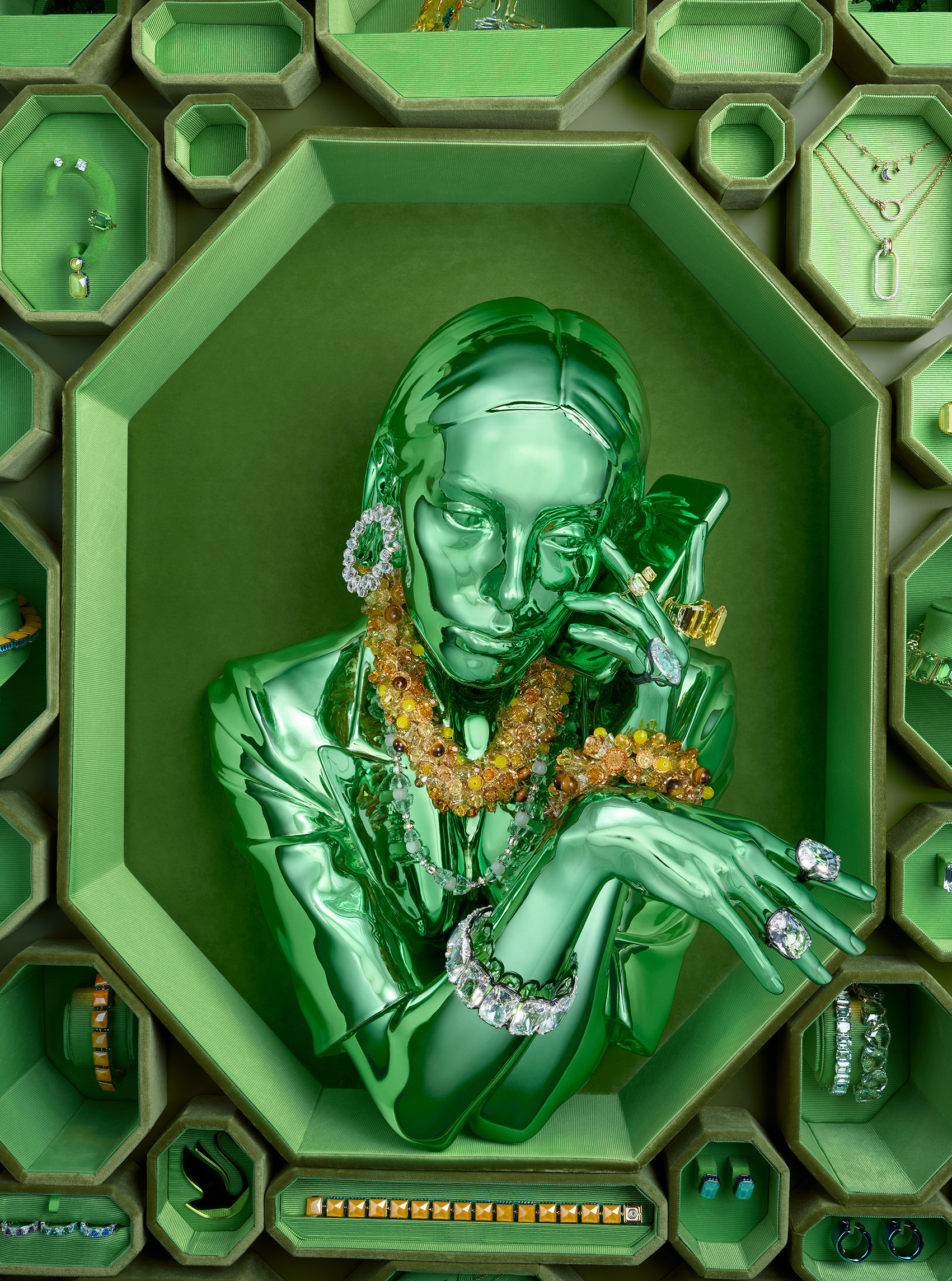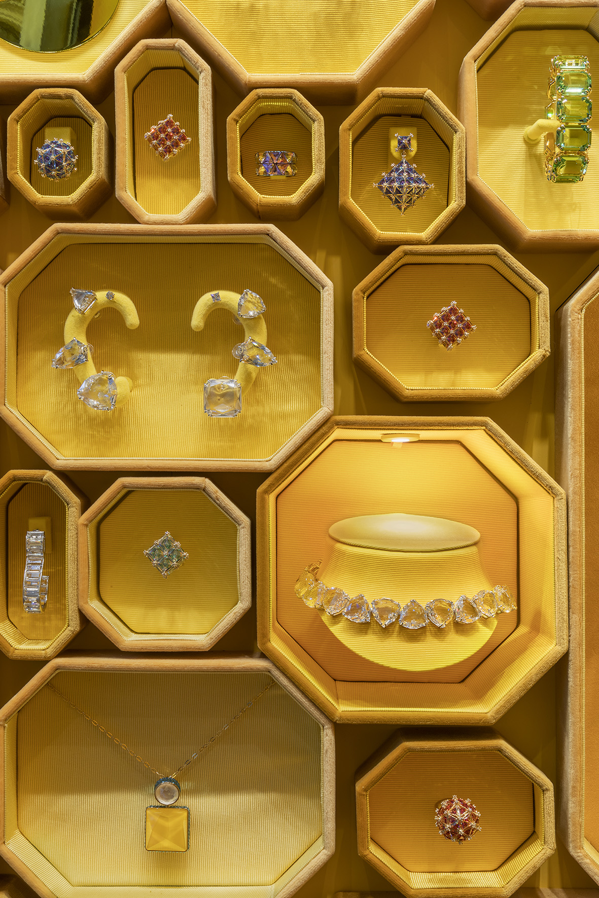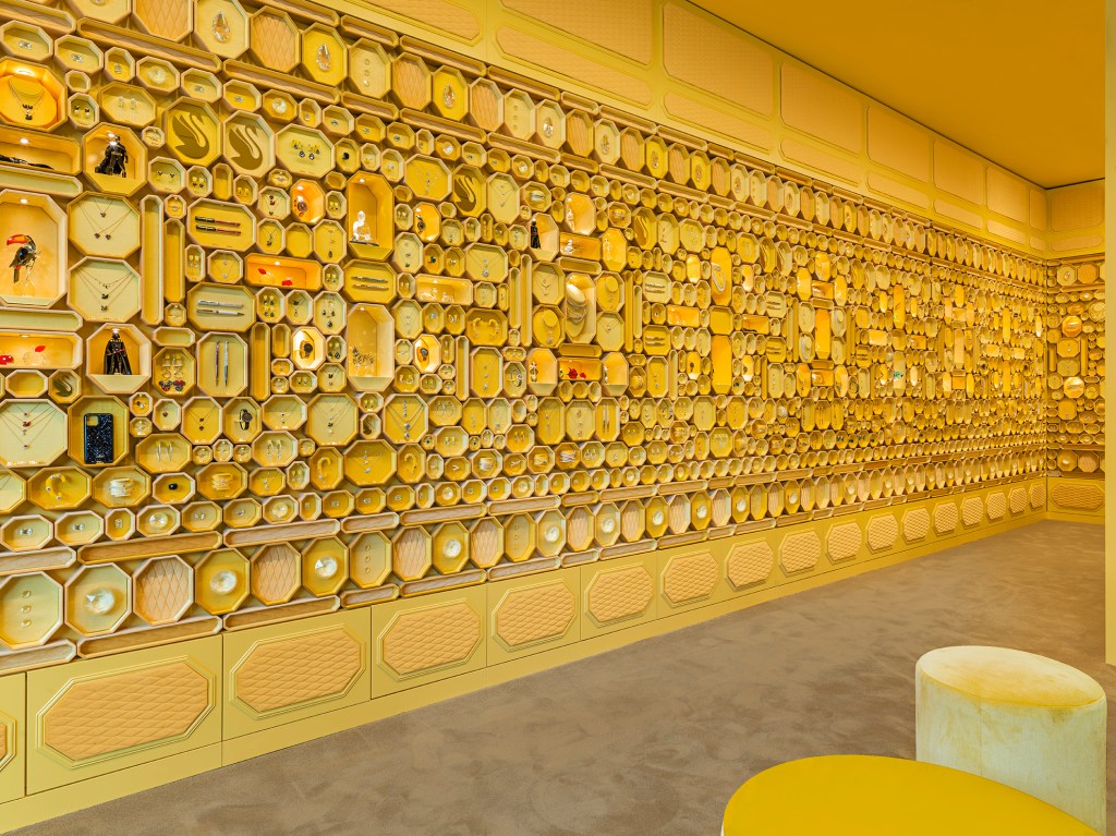 Designed to reflect the brand’s campaign and new visual identity, guests will be welcomed into a sensorial retail space enhanced by vibrant colors, textures, and innovative materials that work together to encourage curiosity and self-expression. Swarovski’s Instant Wonder stores realize a sense of joyful wonder, a candy-like dreamscape filled with the full spectrum of crystal lifestyle pieces—loose components, jewelry, watches, figurines and accessories— and furnished with a captivating backdrop of Swarovski’s octagonal logo silhouette, created from the new packaging.