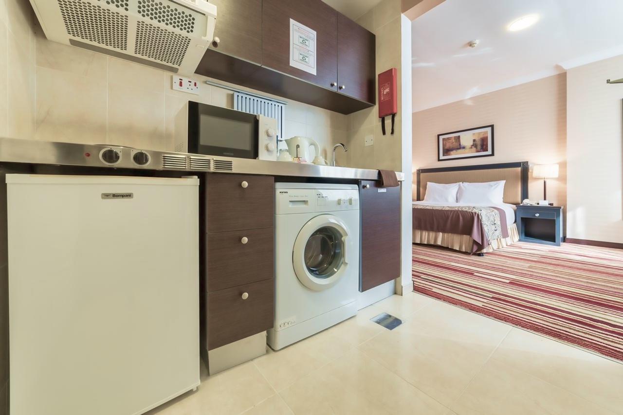 The in-room amenities that adds convenience to long term stay guests includes, fully equipped kitchenette, washing machine, writing Desk, IDD Telephone Facility, choice of smoking and non-smoking rooms and accessible rooms for people of determination.