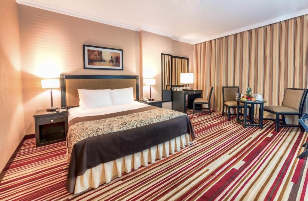 The hotel offers free High-Speed wireless internet, Business Center services, same day laundry and dry-cleaning services, travel and tours reservations, multilingual Team, shoeshine Service, 24 Hours concierge services and a massage center for tired travellers. For leisure and recreation, facilities include a roof-top pool, sauna and a fully equipped gym.