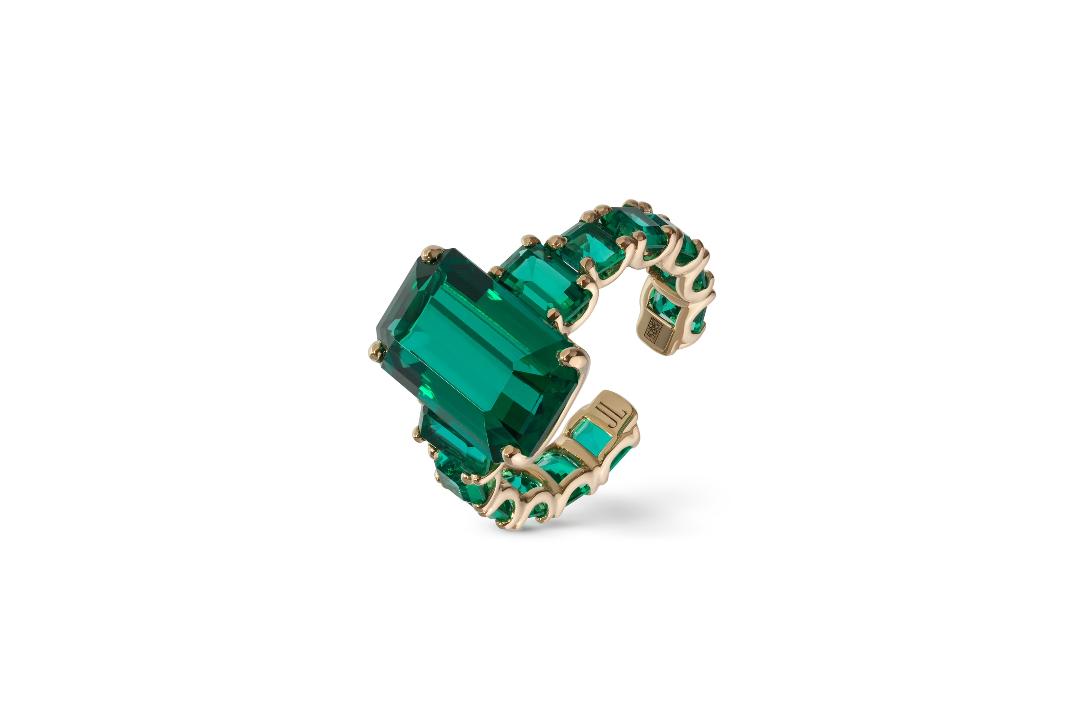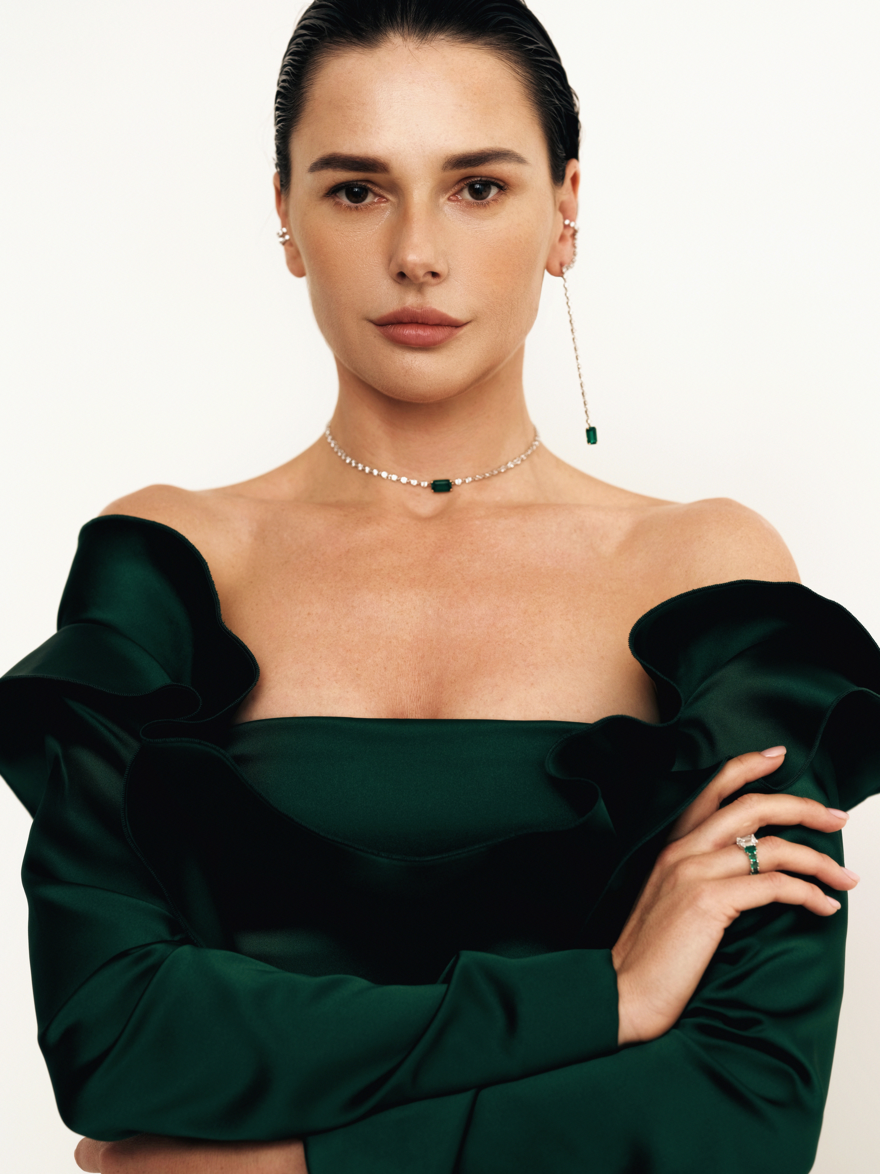 The Emerald Lace collection is dedicated to a powerful, timeless and infinitely beautiful tandem. Meditative emeralds and luxurious diamonds are complemented by rounded gold frames, mimicking weightless airy lace on the body.